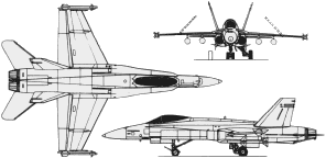 米空軍LWF計画でF-16と一騎打ちをしただけのことはあって、F-18ホーネットも独自の空力設計が目を引く。胴体から機首へ伸びるストレークはF-16と一味違った効果を持ち、ストレーク自身も大きい。ストレークが超音速域で衝撃揚力を発生させる点ではF-16と変わらないが、F-18の場合は胴体とストレークが接する部分へ隙間(スロット)を設けてある。