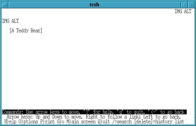 画像表示をサポートせずテキストのみを表示するLynxのようなブラウザだと、画像はロードされないのでページに何があるのかわからない恐れがあります。それを避けるため、<img>タグのalt属性を使い、テキストのみのブラウザへ画像の名称や説明を表示させることも可能です。Lynxの場合、alt属性がなければ<img>タグを使った画像部は[IMAGE]と表示され、alt属性を使うと[IMAGE]ではなくaltで指定されたテキストが表示されます。