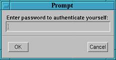 ユーザー認証はサーバ全体または個々のディレクトリに対して行なうことができます。ユーザー認証を行うと、そのサーバまたはディレクトリにアクセスする際、ログインと同じようにユーザ名とパスワードが一致しなくてはなりません。ユーザ名とパスワードを含むファイルはシステムが持つ/etc/passwrdと一致する必要はなく、WWWサーバー用にユーザ名とパスワードのファイルが用意されます。モザイクの場合、ユーザー認証を設定すると次のようなプロンプトが表示されます。